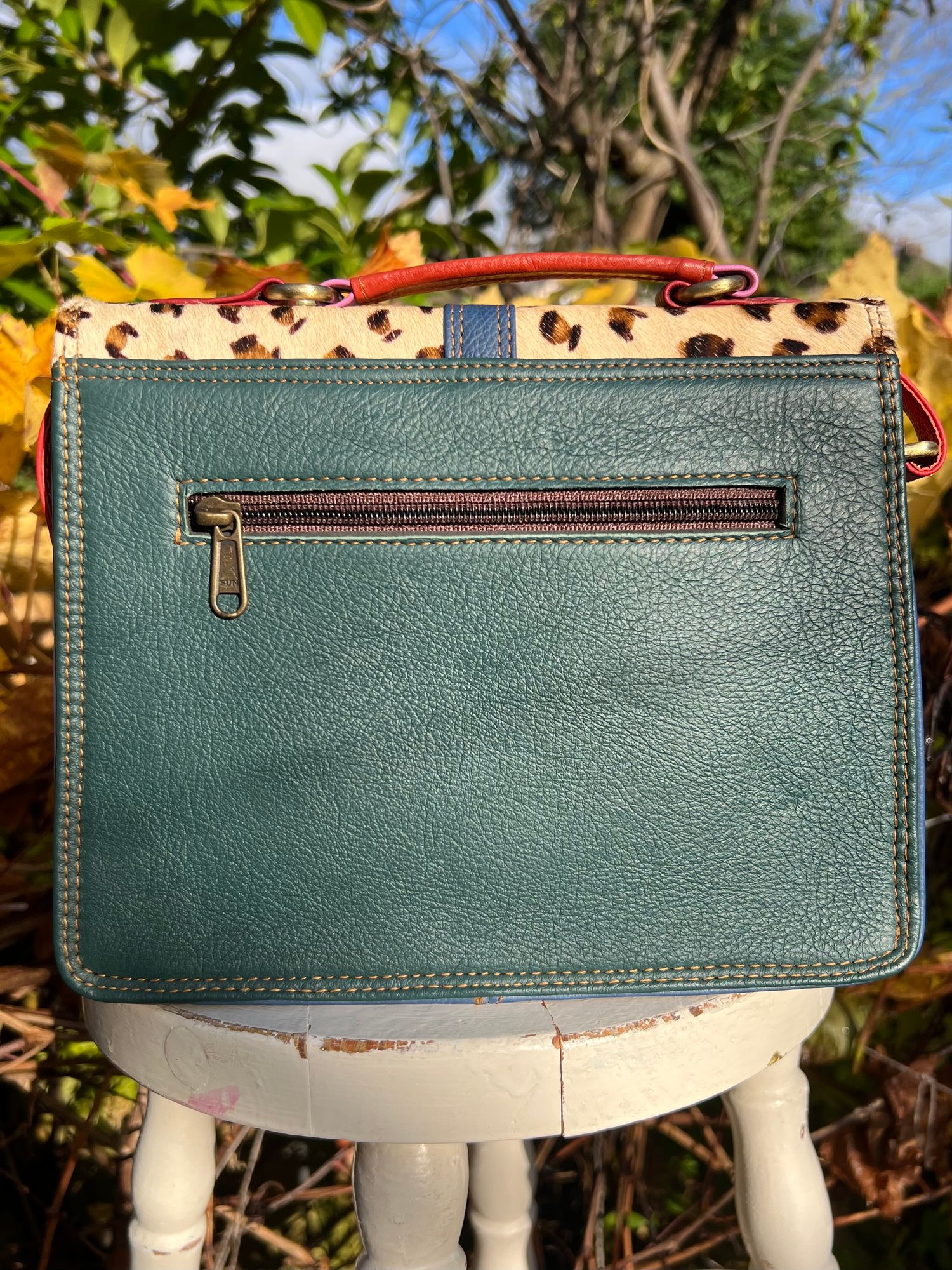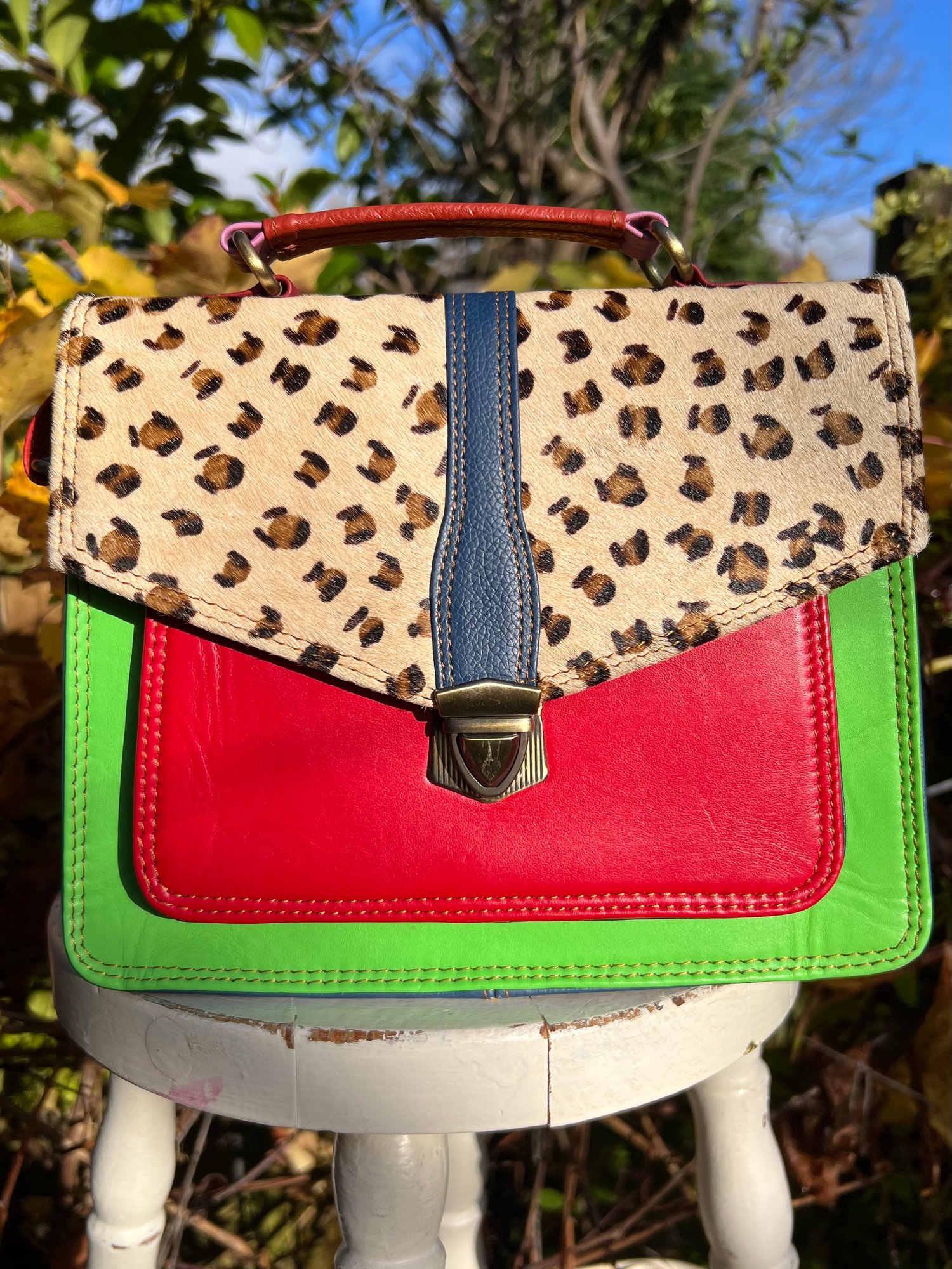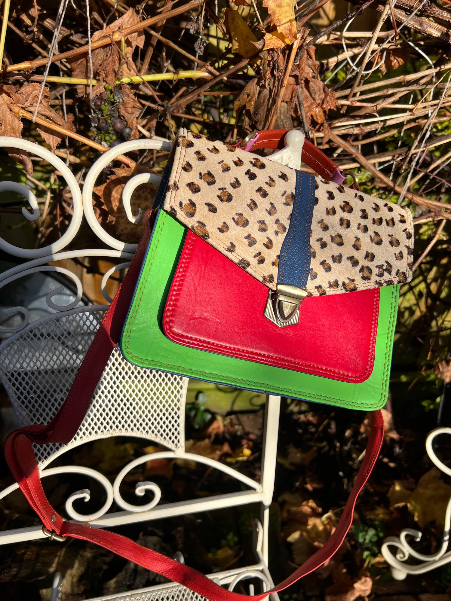 A favourite of our Harlequin Collection is this unusual recycled buffalo leather bag with shoulder strap and carry handle.